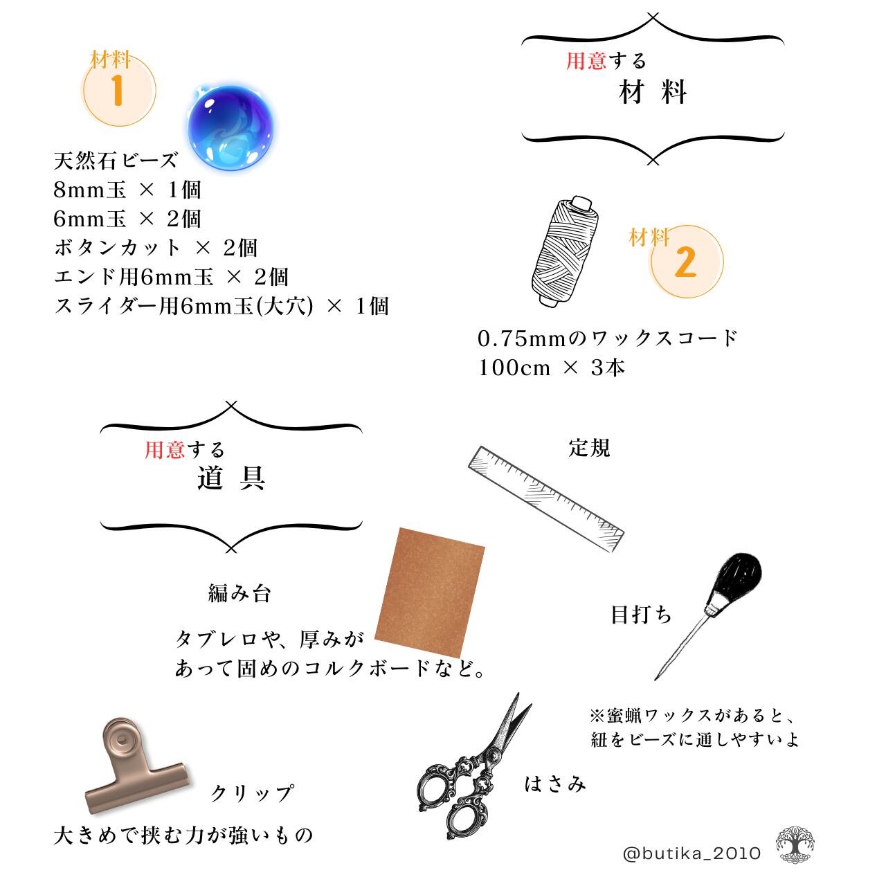 天然石をワックスコードで編み込むマクラメねじり編みブレスレットの作り方説明書です。