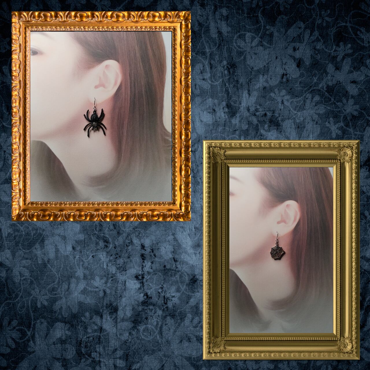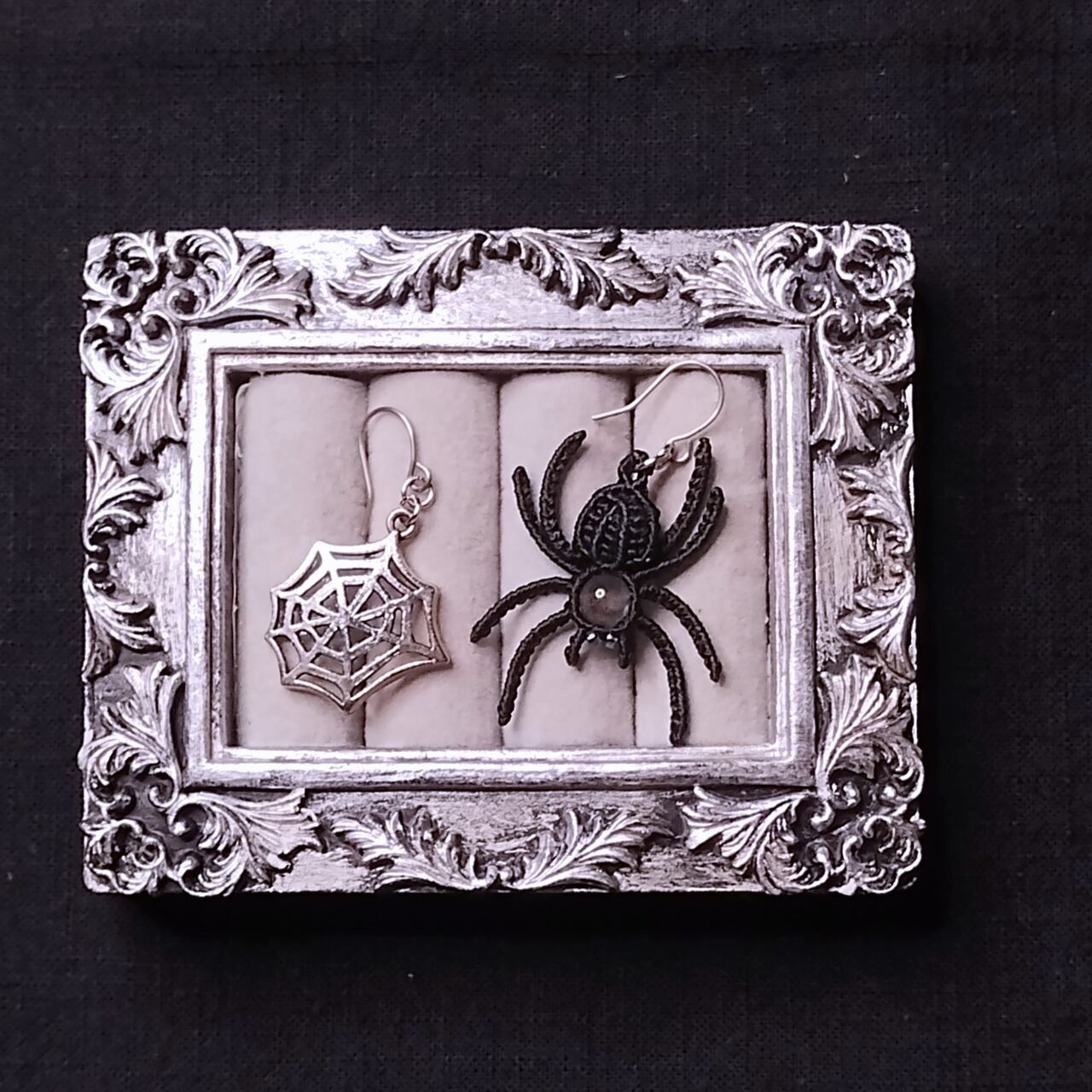 蜘蛛はブラック、蜘蛛の巣の金属モチーフはシルバー色です。